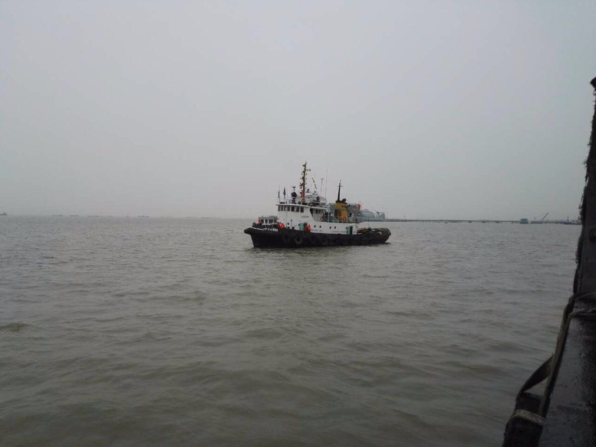 “百順66”發(fā)生險(xiǎn)情后,立即向?qū)毶胶J戮种笓]中心,項(xiàng)目部調(diào)度中心發(fā)送求救信號(hào),隨后項(xiàng)目部應(yīng)急拖輪“鎮(zhèn)港拖1001”立即全速趕往出事水域,實(shí)施救援。
